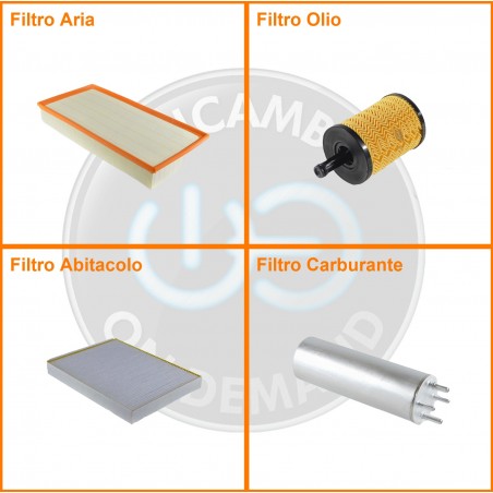ComposizioneFiltro abitacolo, Filtro aria, Filtro gasolio, Filtro olio