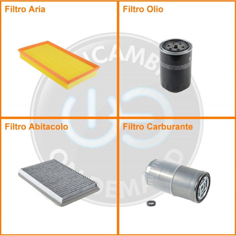 ComposizioneFiltro gasolio, Filtro olio, Filtro abitacolo ai carboni attivi, Filtro aria