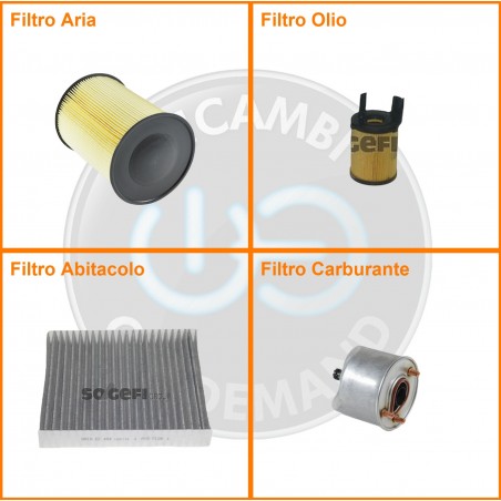 ComposizioneFiltro abitacolo ai carboni attivi, Filtro aria, Filtro gasolio, Filtro olio