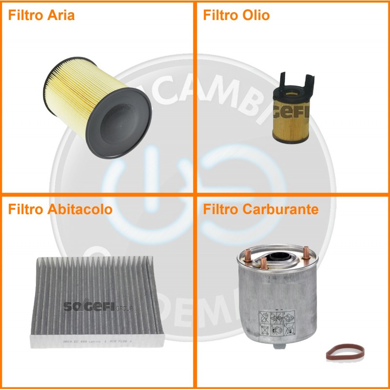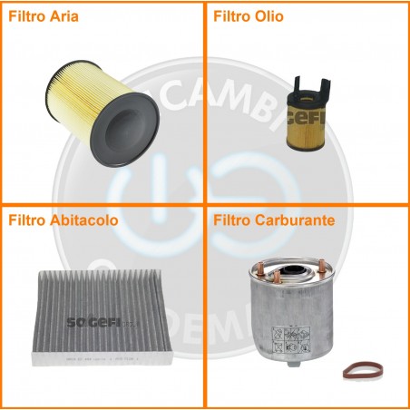 ComposizioneFiltro abitacolo ai carboni attivi, Filtro aria, Filtro gasolio, Filtro olio