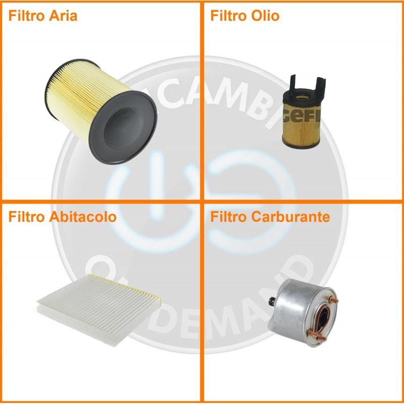 ComposizioneFiltro gasolio, Filtro olio, Filtro abitacolo, Filtro aria