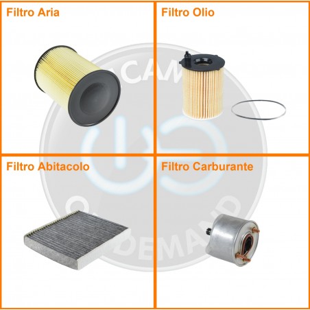 ComposizioneFiltro gasolio, Filtro olio, Filtro abitacolo ai carboni attivi, Filtro aria