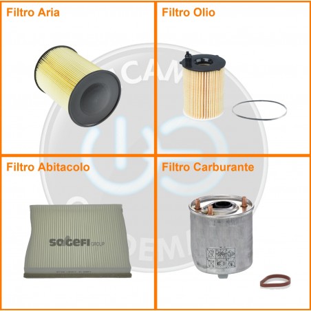 ComposizioneFiltro gasolio, Filtro olio, Filtro abitacolo, Filtro aria
