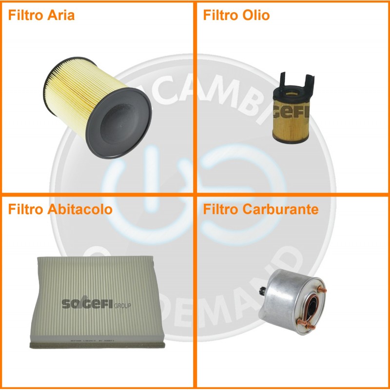 ComposizioneFiltro gasolio, Filtro olio, Filtro abitacolo, Filtro aria