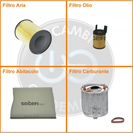 ComposizioneFiltro gasolio, Filtro olio, Filtro abitacolo, Filtro aria