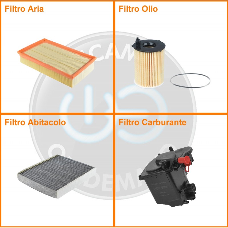 ComposizioneFiltro gasolio, Filtro olio, Filtro abitacolo ai carboni attivi, Filtro aria