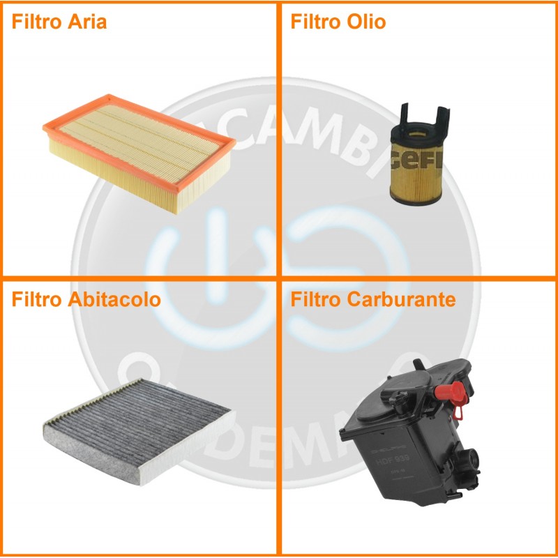 ComposizioneFiltro gasolio, Filtro olio, Filtro abitacolo ai carboni attivi, Filtro aria
