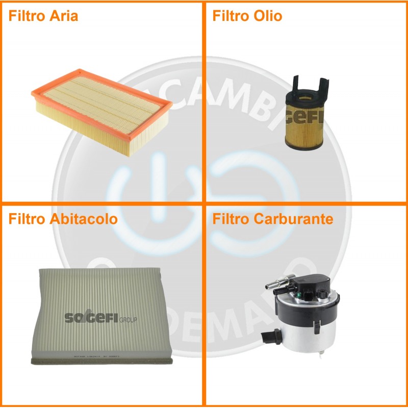 ComposizioneFiltro gasolio, Filtro olio, Filtro abitacolo, Filtro aria