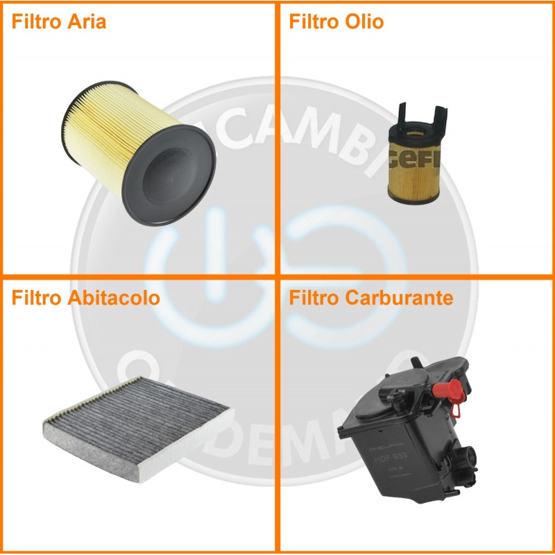 ComposizioneFiltro gasolio, Filtro olio, Filtro abitacolo ai carboni attivi, Filtro aria