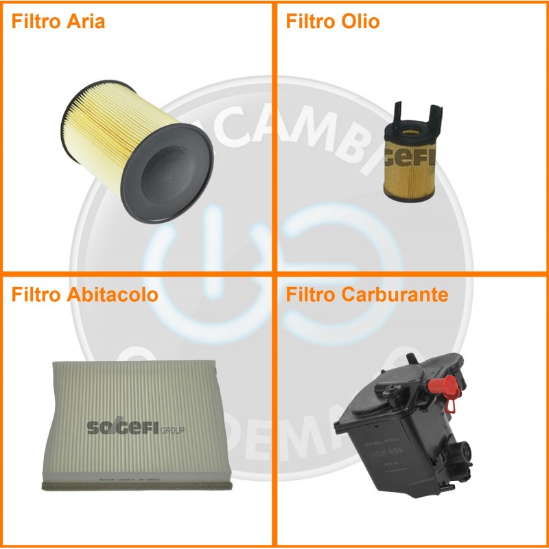 ComposizioneFiltro gasolio, Filtro olio, Filtro abitacolo, Filtro aria