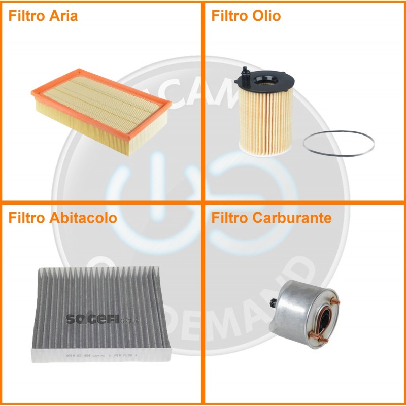 ComposizioneFiltro abitacolo ai carboni attivi, Filtro aria, Filtro gasolio, Filtro olio