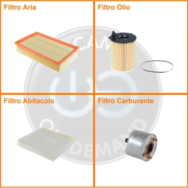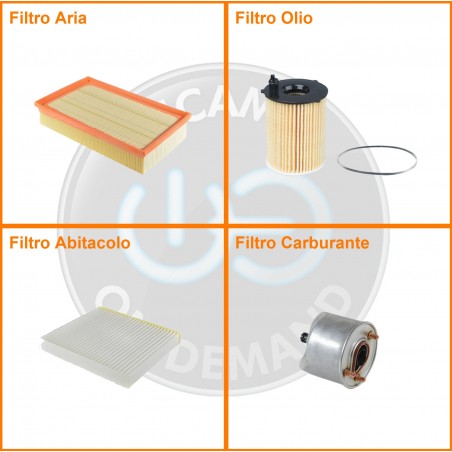 ComposizioneFiltro abitacolo, Filtro aria, Filtro gasolio, Filtro olio
