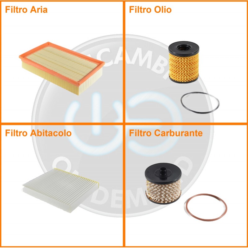 ComposizioneFiltro gasolio, Filtro olio, Filtro abitacolo, Filtro aria