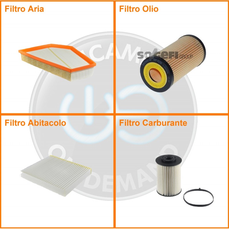 ComposizioneFiltro abitacolo, Filtro aria, Filtro gasolio, Filtro olio
