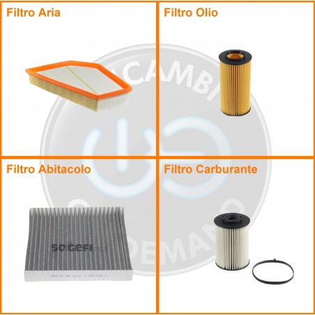 ComposizioneFiltro abitacolo ai carboni attivi, Filtro aria, Filtro gasolio, Filtro olio