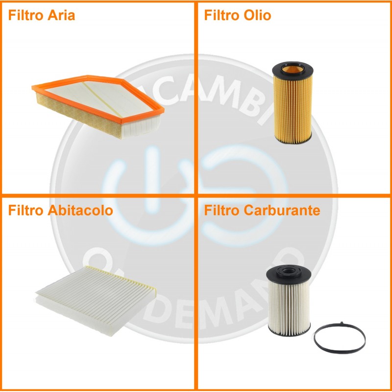 ComposizioneFiltro abitacolo, Filtro aria, Filtro gasolio, Filtro olio