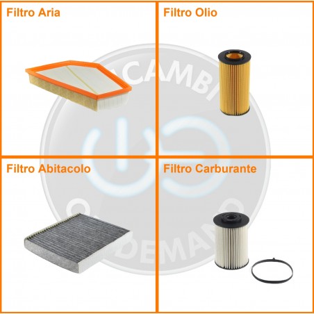 ComposizioneFiltro gasolio, Filtro olio, Filtro abitacolo ai carboni attivi, Filtro aria