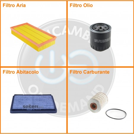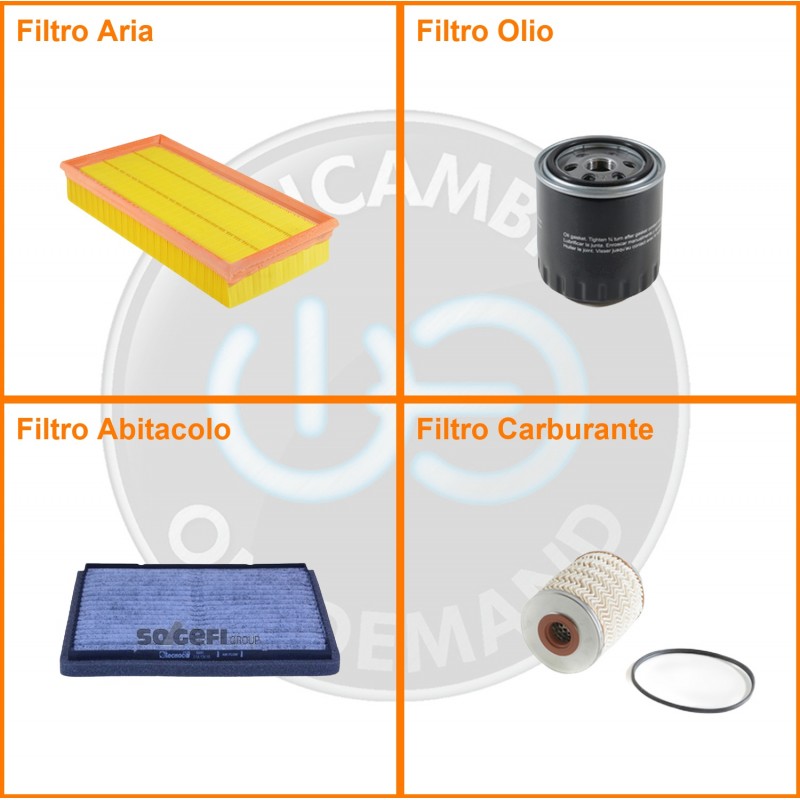ComposizioneFiltro abitacolo ai carboni attivi, Filtro aria, Filtro gasolio, Filtro olio
