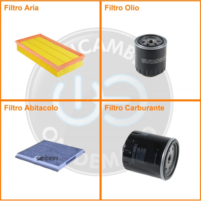 ComposizioneFiltro abitacolo ai carboni attivi, Filtro aria, Filtro gasolio, Filtro olio