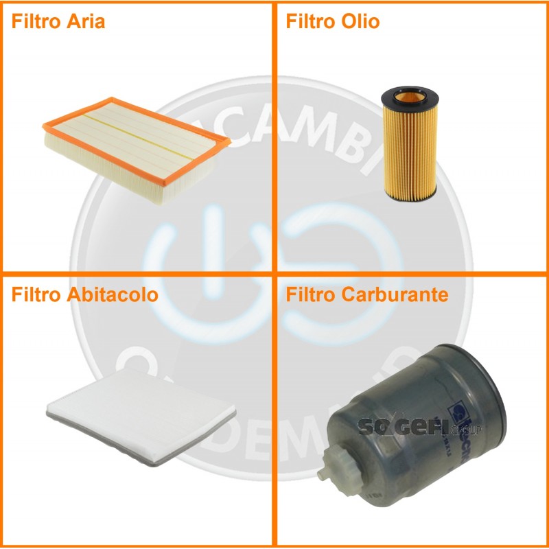 ComposizioneFiltro abitacolo, Filtro aria, Filtro gasolio, Filtro olio