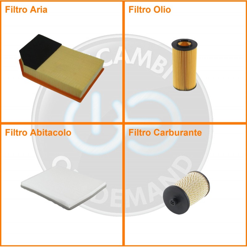 ComposizioneFiltro abitacolo, Filtro aria, Filtro gasolio, Filtro olio