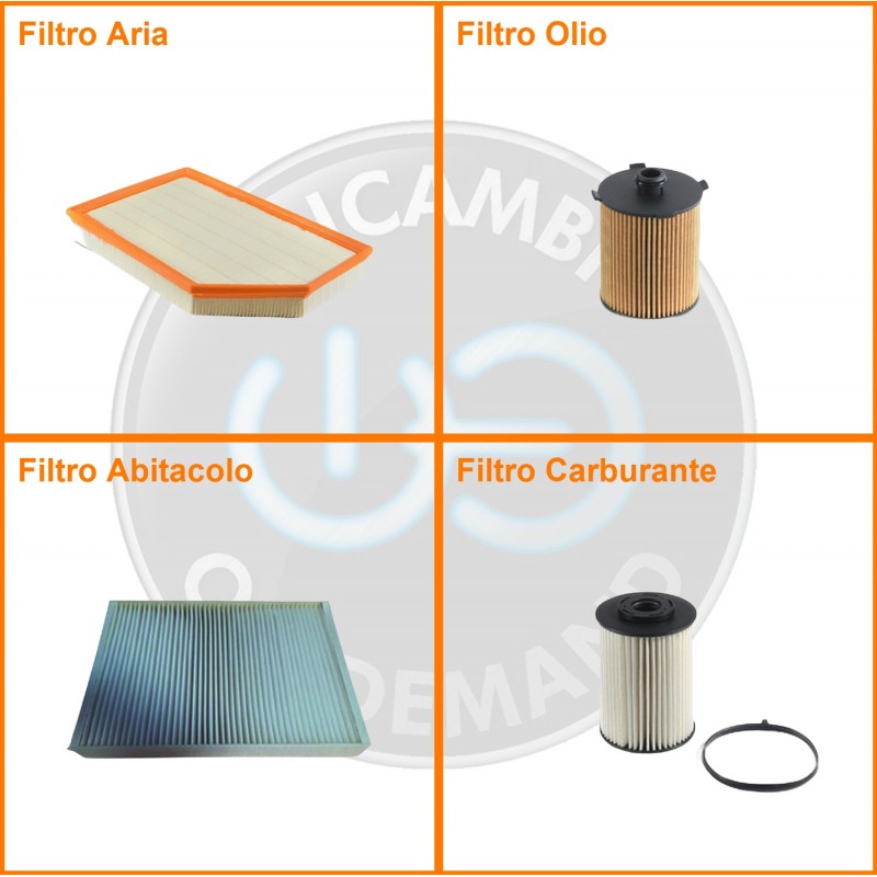 ComposizioneFiltro gasolio, Filtro olio, Filtro abitacolo, Filtro aria