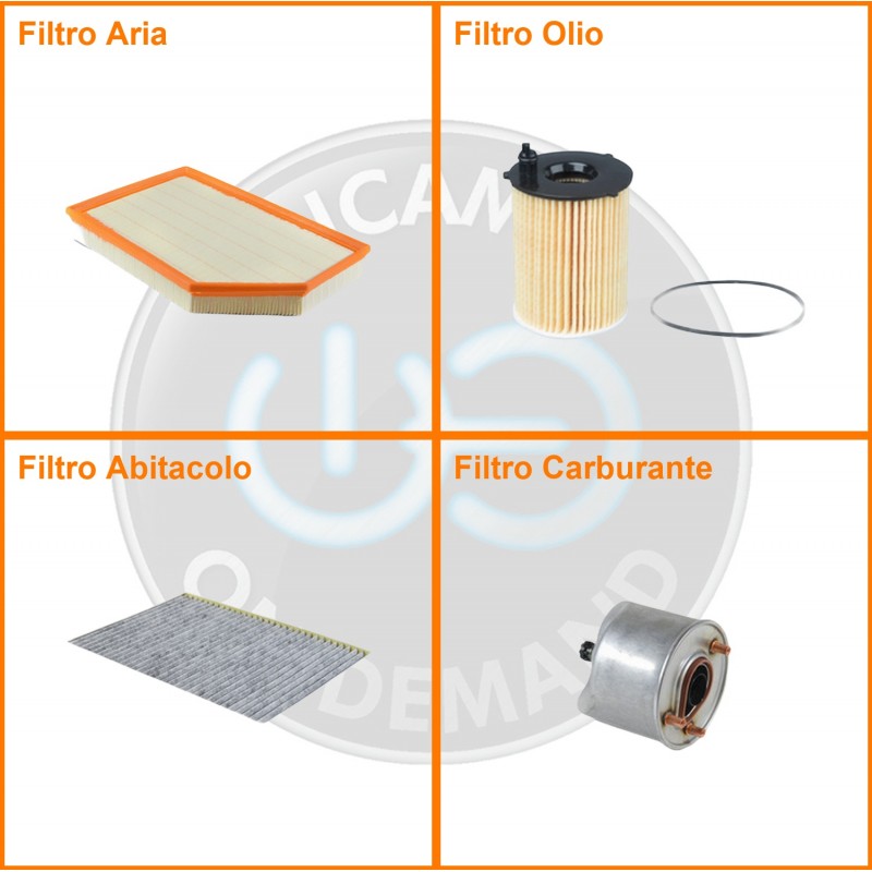 ComposizioneFiltro abitacolo ai carboni attivi, Filtro aria, Filtro gasolio, Filtro olio