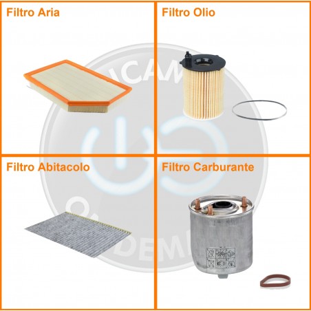ComposizioneFiltro abitacolo ai carboni attivi, Filtro aria, Filtro gasolio, Filtro olio