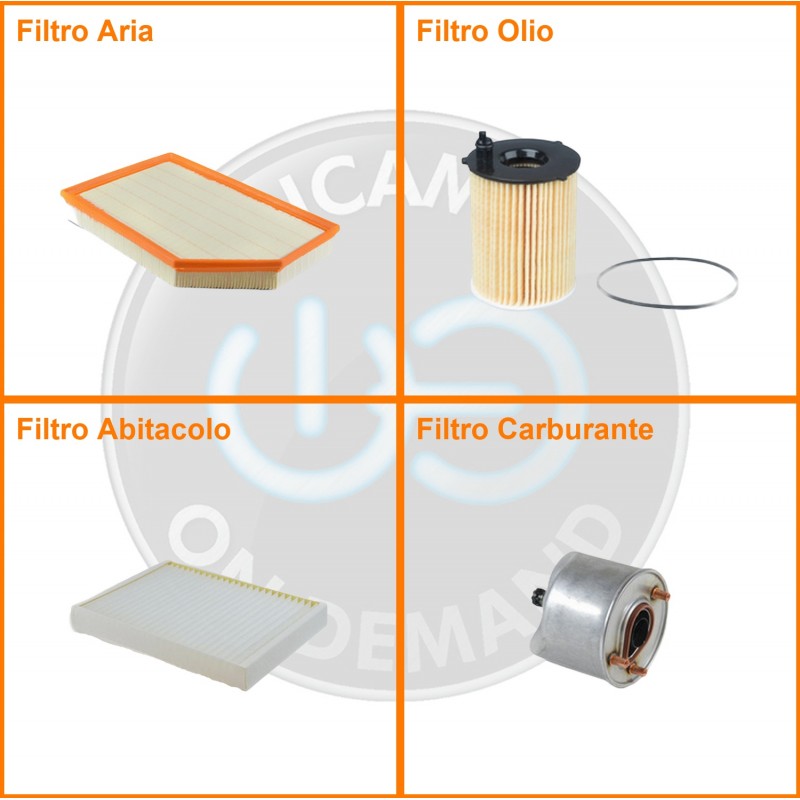 ComposizioneFiltro gasolio, Filtro olio, Filtro abitacolo, Filtro aria