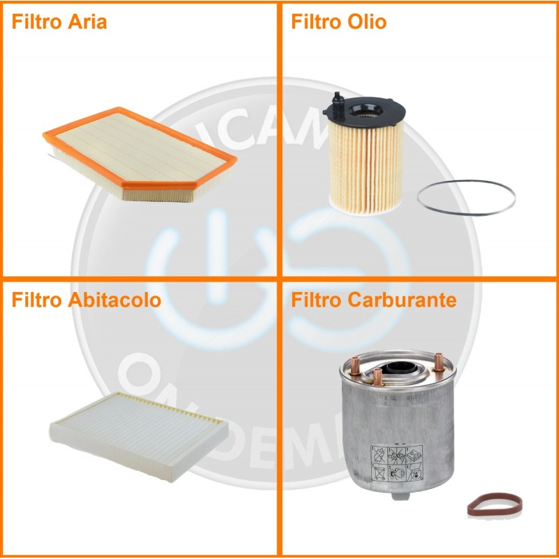 ComposizioneFiltro gasolio, Filtro olio, Filtro abitacolo, Filtro aria