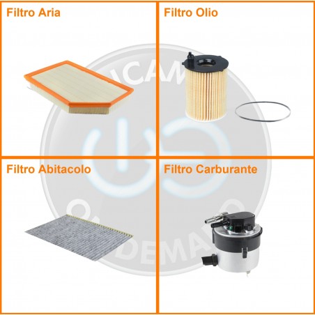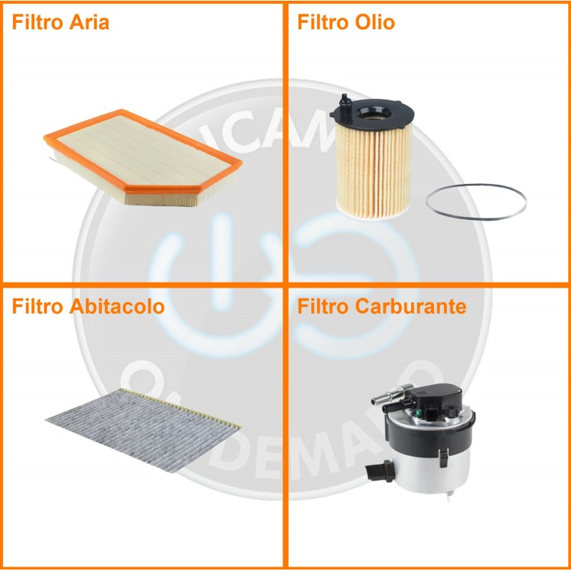 ComposizioneFiltro gasolio, Filtro olio, Filtro abitacolo ai carboni attivi, Filtro aria