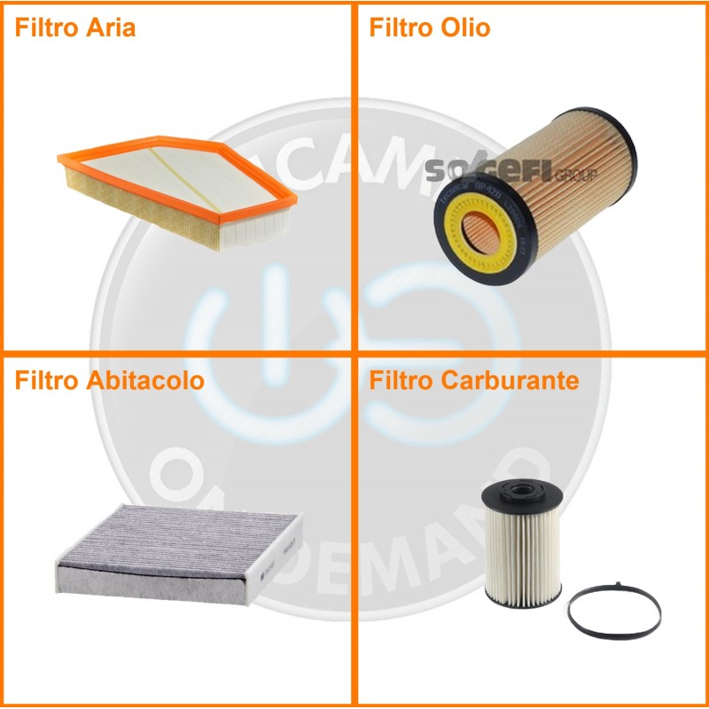 ComposizioneFiltro abitacolo ai carboni attivi, Filtro aria, Filtro gasolio, Filtro olio