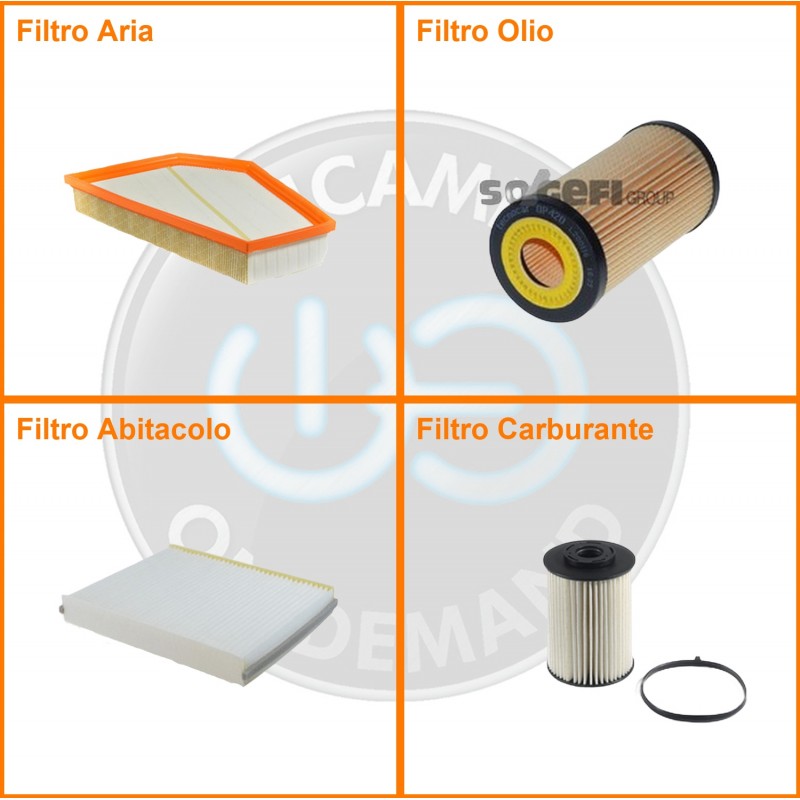 ComposizioneFiltro abitacolo, Filtro aria, Filtro gasolio, Filtro olio