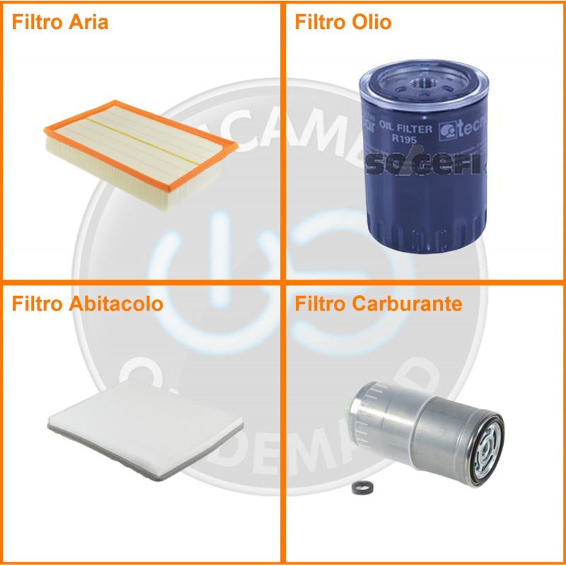 ComposizioneFiltro gasolio, Filtro olio, Filtro abitacolo, Filtro aria
