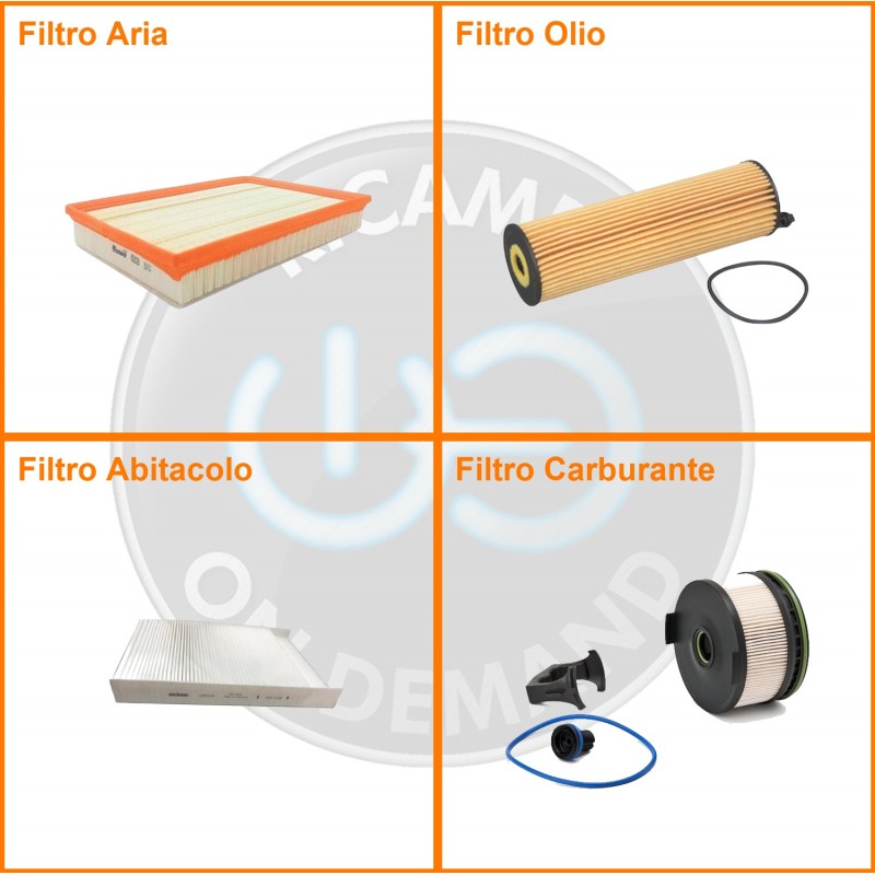 ComposizioneFiltro gasolio, Filtro olio, Filtro abitacolo, Filtro aria