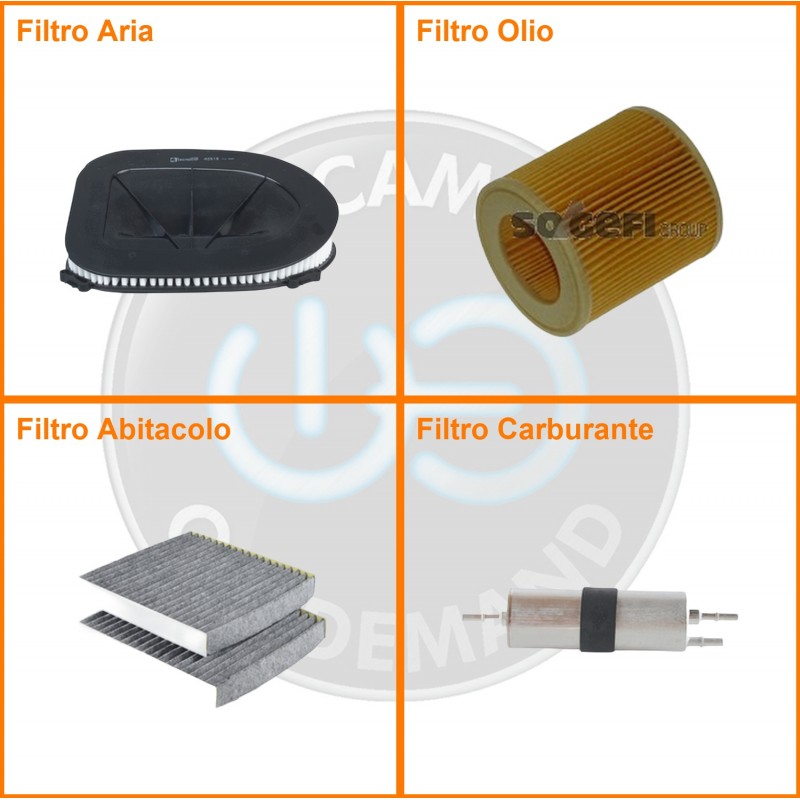 ComposizioneFiltro benzina, Filtro olio, Filtro abitacolo ai carboni attivi, Filtro aria