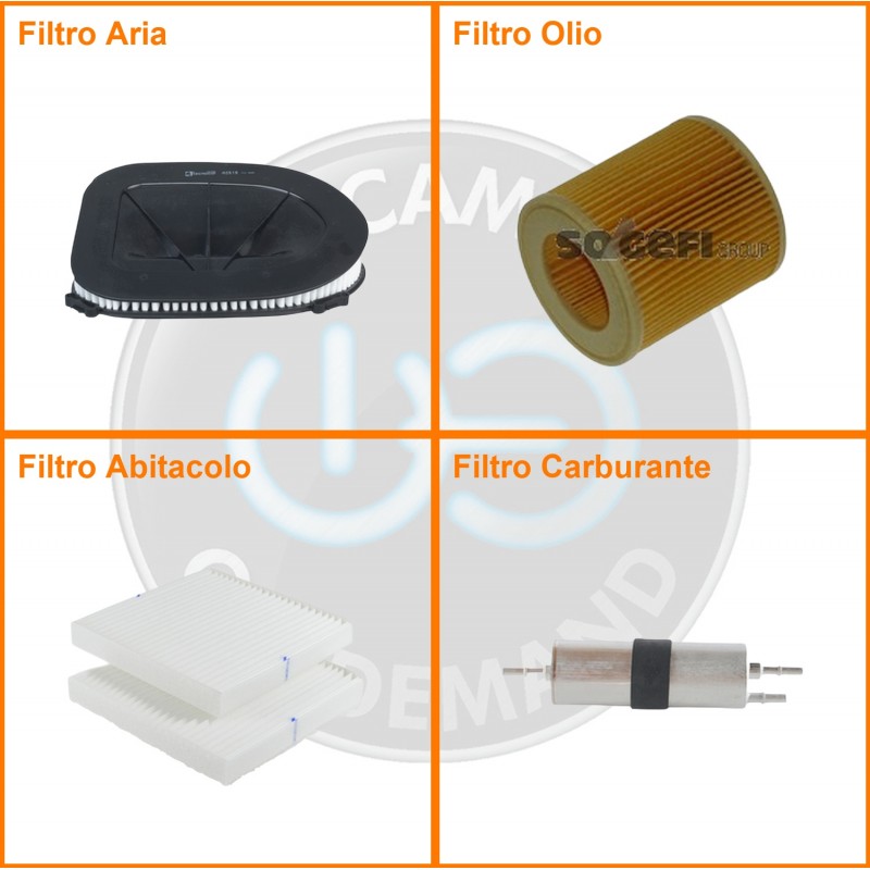 ComposizioneFiltro abitacolo, Filtro aria, Filtro benzina, Filtro olio