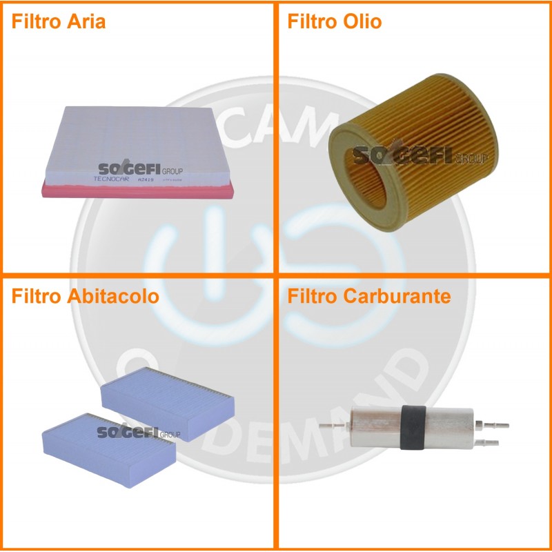ComposizioneFiltro benzina, Filtro olio, Filtro abitacolo, Filtro aria