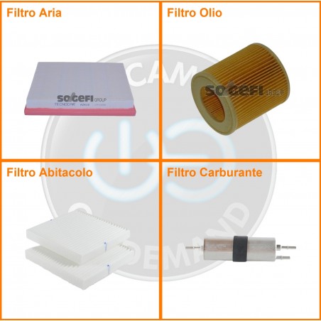ComposizioneFiltro abitacolo, Filtro aria, Filtro benzina, Filtro olio