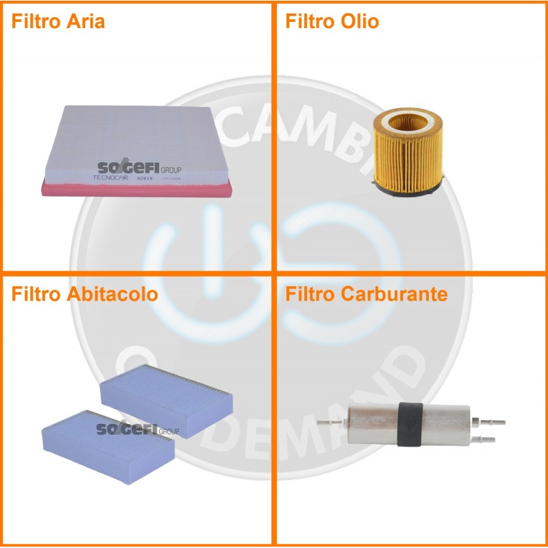 ComposizioneFiltro abitacolo, Filtro aria, Filtro benzina, Filtro olio