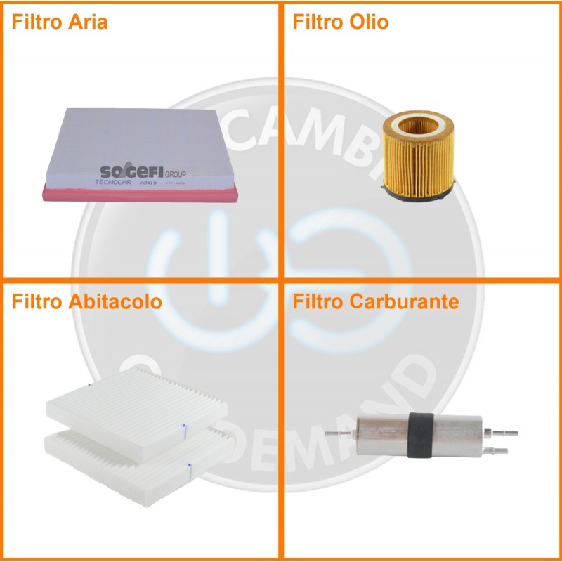 ComposizioneFiltro benzina, Filtro olio, Filtro abitacolo, Filtro aria
