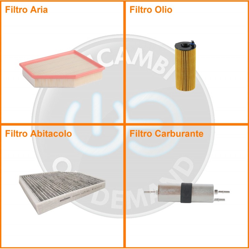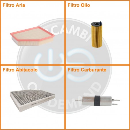 ComposizioneFiltro abitacolo ai carboni attivi, Filtro aria, Filtro benzina, Filtro olio