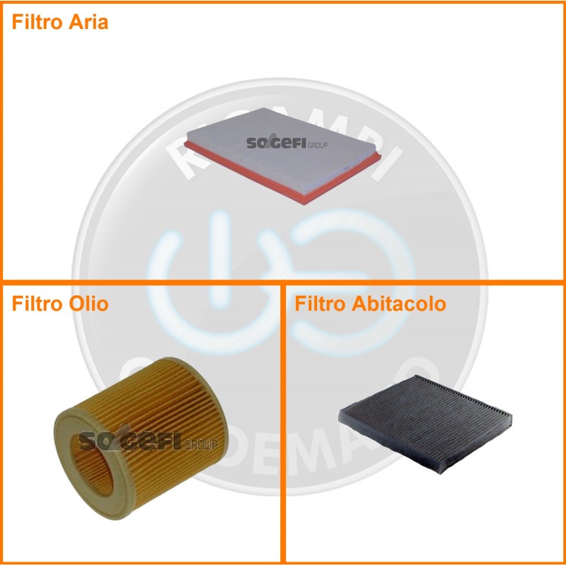 ComposizioneFiltro abitacolo, Filtro aria, Filtro olio