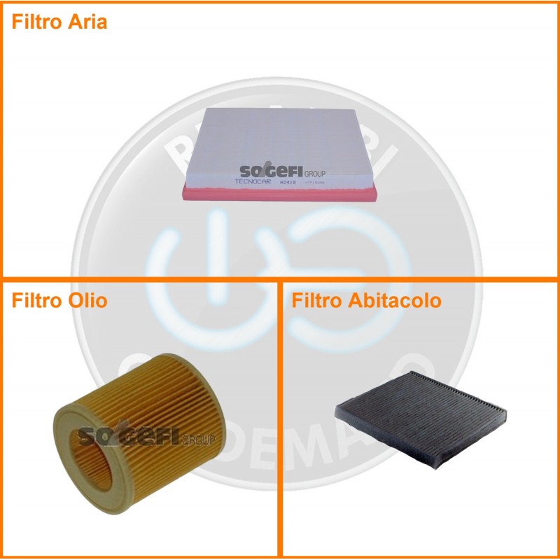 ComposizioneFiltro abitacolo, Filtro aria, Filtro olio