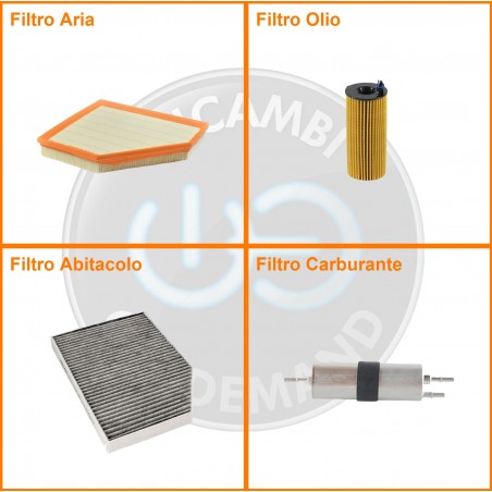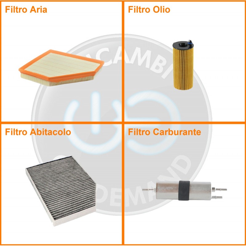 ComposizioneFiltro benzina, Filtro olio, Filtro abitacolo, Filtro aria