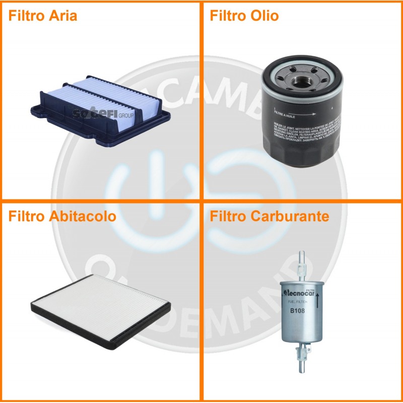 ComposizioneFiltro benzina, Filtro olio, Filtro abitacolo, Filtro aria