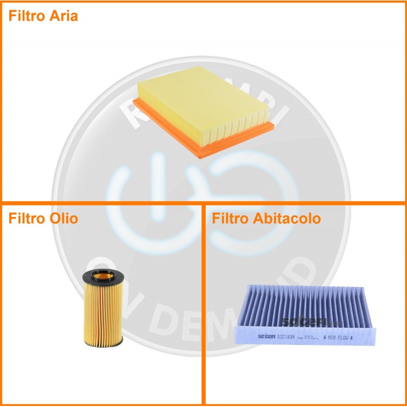 ComposizioneFiltro olio, Filtro abitacolo ai carboni attivi, Filtro aria