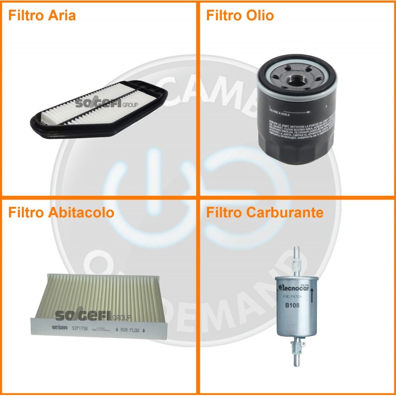 ComposizioneFiltro benzina, Filtro olio, Filtro abitacolo, Filtro aria