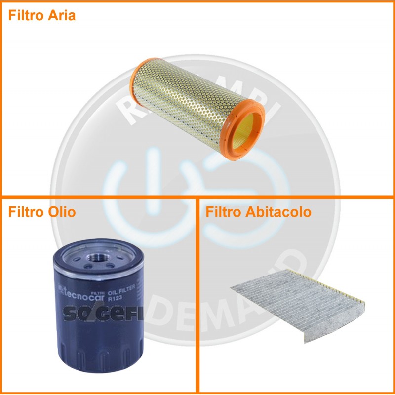 ComposizioneFiltro aria, Filtro olio, Filtro abitacolo ai carboni attivi