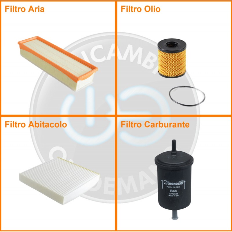 ComposizioneFiltro abitacolo, Filtro aria, Filtro benzina, Filtro olio